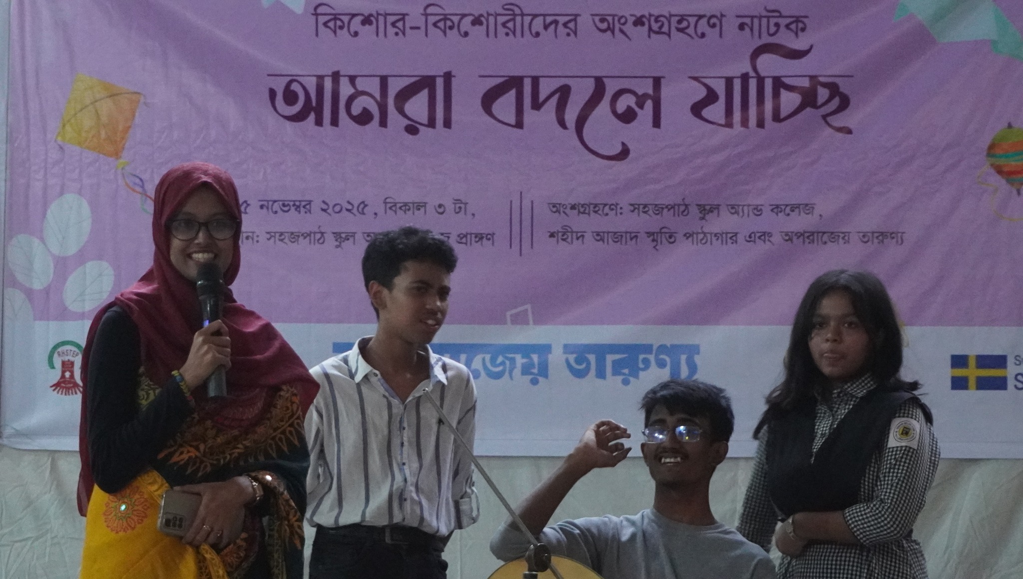 On 15 November 2025 at 4:00 PM, Aparajeyo Tarunno (UYP Project) Dhaka Centre organized a “Theatre for SRHR” awareness programme at the Masud Stage of Shohojpath School and College in the Shanir Akhra area. The event featured a stage performance of the drama “Amra Bodle Jachhi,” followed by a vibrant concert by adolescents and youth participants.